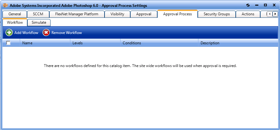 8. To view a simulation of the approval process for this catalog item, open the Simulate subtab.