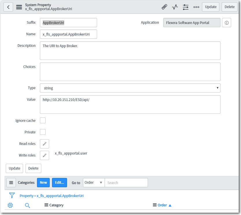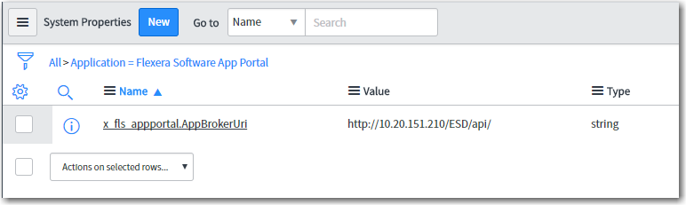 x_fls_appportal.AppBrokerUrl. The System Property view for that property opens.