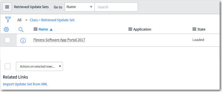 .xmlfile and click Upload . When the upload is complete, the file will be listed on the Retrieved Update Sets page.