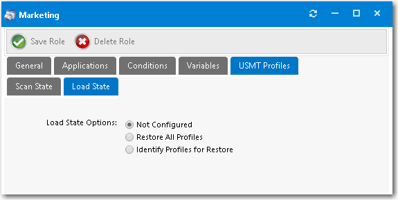 User state migration refers to the process of transferring user persona information and settings between using the Microsoft User State Migration Tool (USMT), a command line utility program. You can configure a role in App Portal to migrate user profiles with USMT by intelligently detecting the user details to migrate based on role conditions.