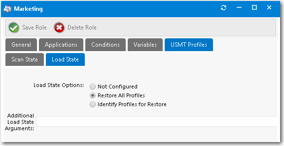 19. If you want additional load state arguments to be used during the load state step in the System Center Configuration Manager task sequence, enter those arguments in the Additional Load State Arguments field.