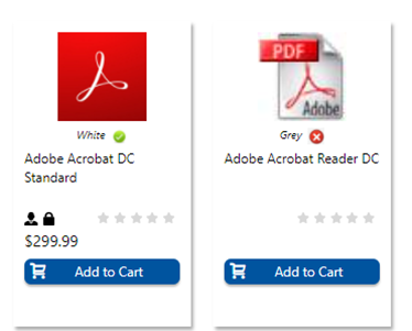 In the image above, Adobe Acrobat DC Standard is classified as White which is a Preferred type. Adobe Acrobat Reader DC is classified as Grey which is Non-Preferred type. An alert message is displayed with options to choose alternates when users click Add to Cart for a Non-Preferred catalog. This is only when the Add to Cart button is clicked, not when the Install Now button is clicked.